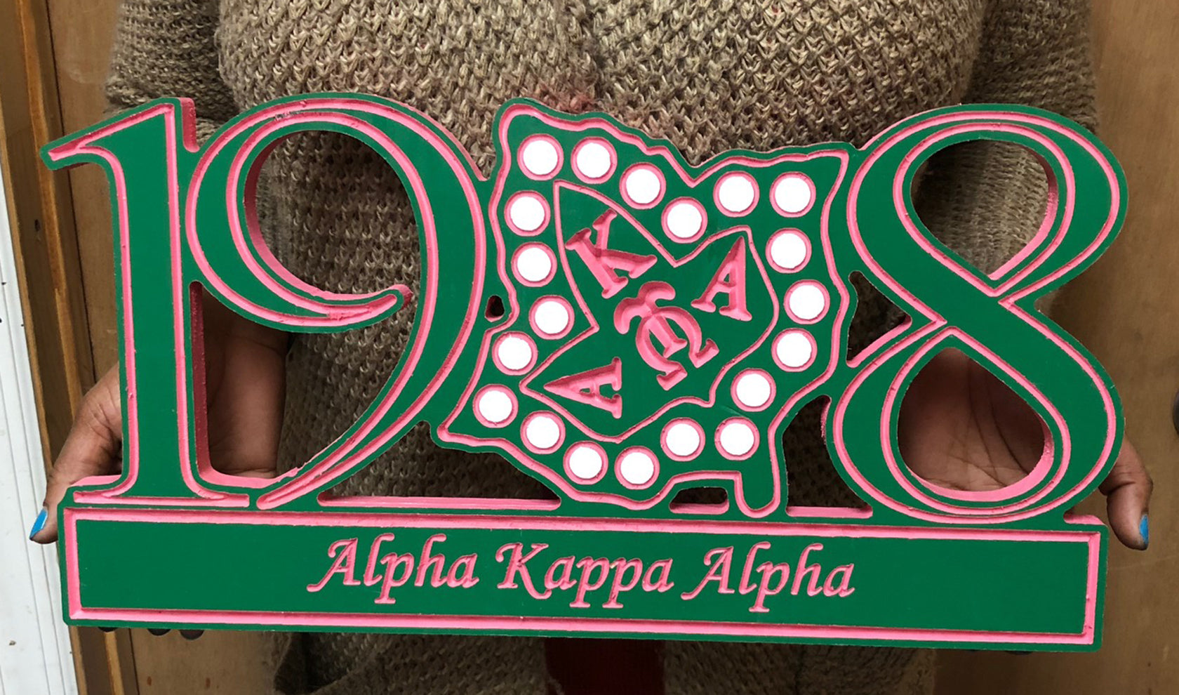 This is a custom made Alpha Kappa Alpha Sorority, Inc. plaque. These letters are not raised, they are cut into the wood. It is not multiple pieces cut out and glued together. It is a SINGLE piece of carved wood, painted to near perfection. This is a one of kind custom piece. No two are alike.