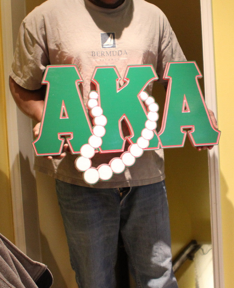 24" Wide Painted Alpha Kappa Alpha Sorority Greek Letters draped in 20 Pearls . Proudly display this item for all your family, friends, coworkers and Sorors to see.