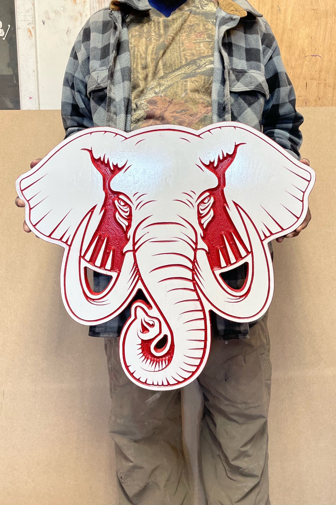 This is a Painted and carved Elephant Head. The custom option can be engraved with your persoanl info as shown in the third picture.